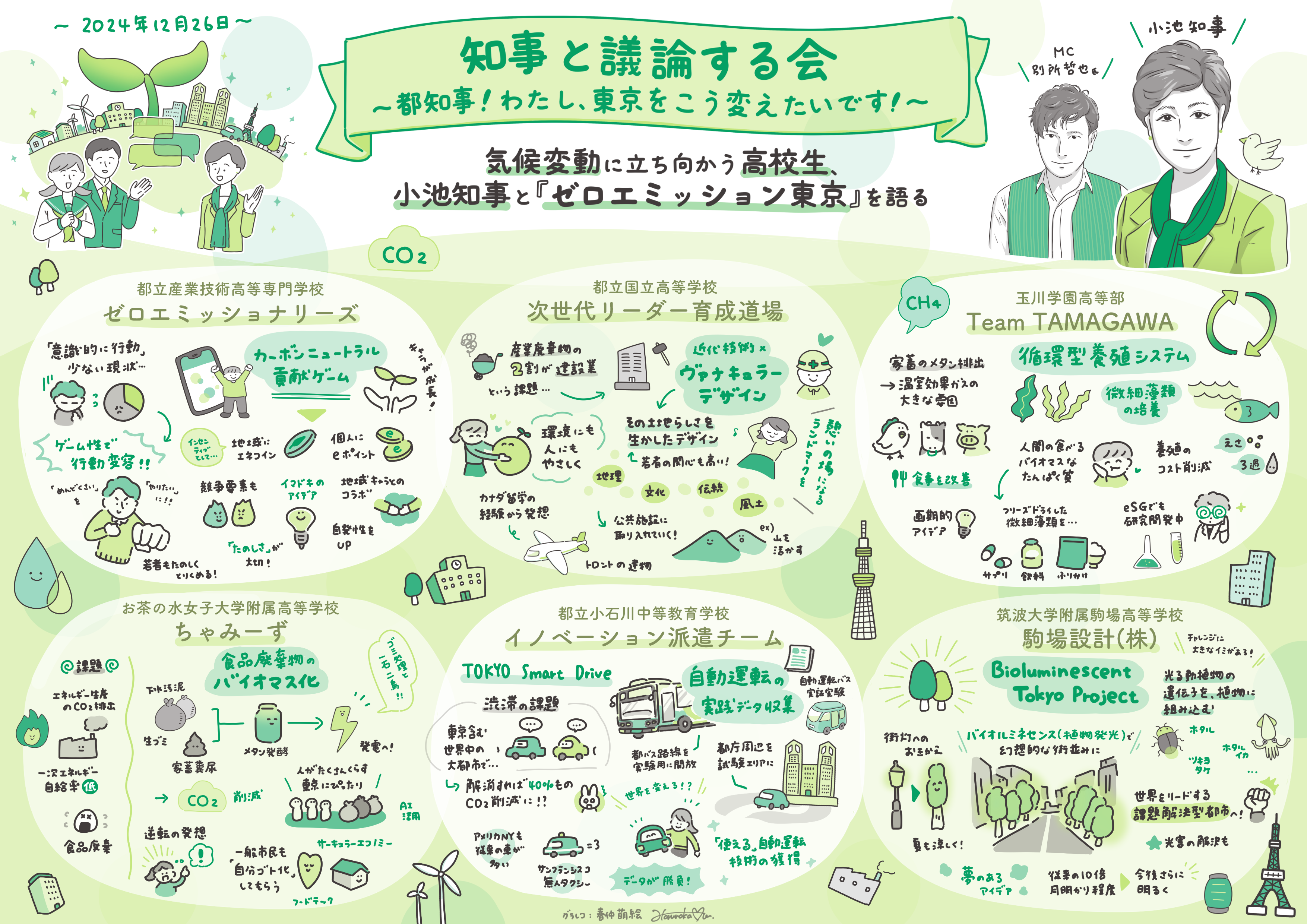 「ゼロエミッション東京の実現」をテーマとして、都内6校24名の高校生等が持続可能な未来に向けたアイデアを小池知事に提案