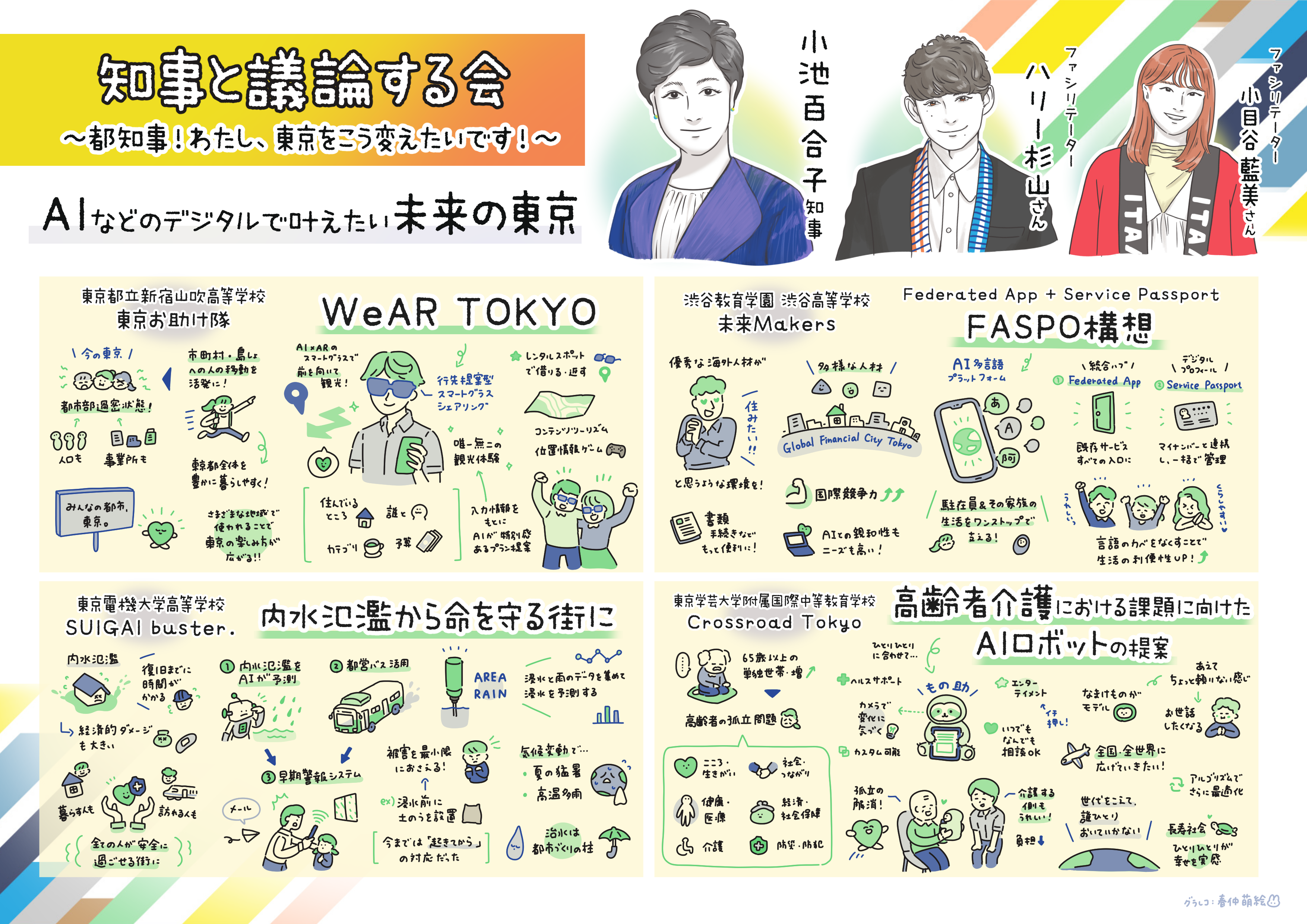 「AIなどのデジタルで叶えたい『未来の東京』」をテーマとして、都内4校12名の高校生が未来の東京向けたアイデアを小池知事に提案
