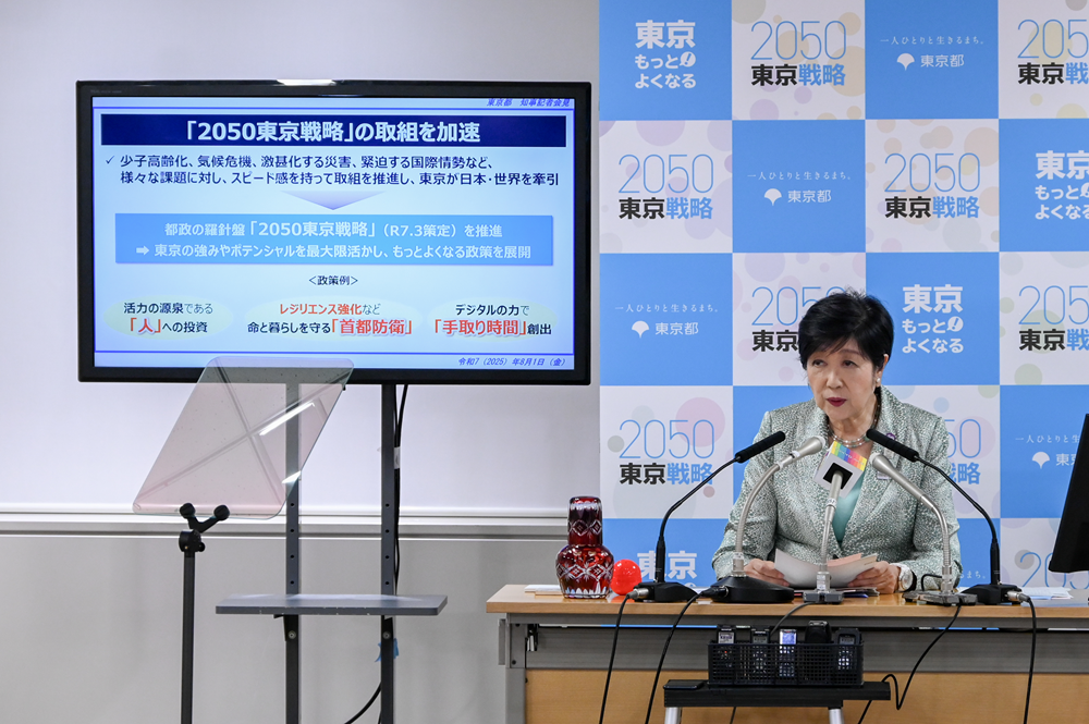 | 2025年8月1日 | 1 発災時のエレベーターの安全対策 2 暑さ対策 3 「2050東京戦略」推進に向けた取組 4 デフリンピック等に関する取組 5 TOKYO空き家活用魅力発信プロジェクト 6 夏休み期間の「トー横」対策 7 東京での快適な旅の過ごし方キャンペーン |