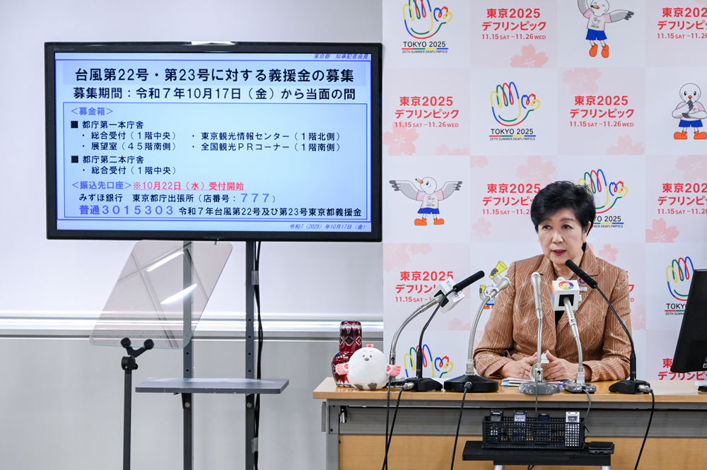 | 2025年10月24日 | 1 台風22号、23号による被害への対応 2 江戸のこころで 食品ロスゼロ!キャンペーン 3 東京2025デフリンピック競技観戦ガイド 4 子供向けバリアフリーアニメーション 5 TIB 2nd Anniversary WEEK |
