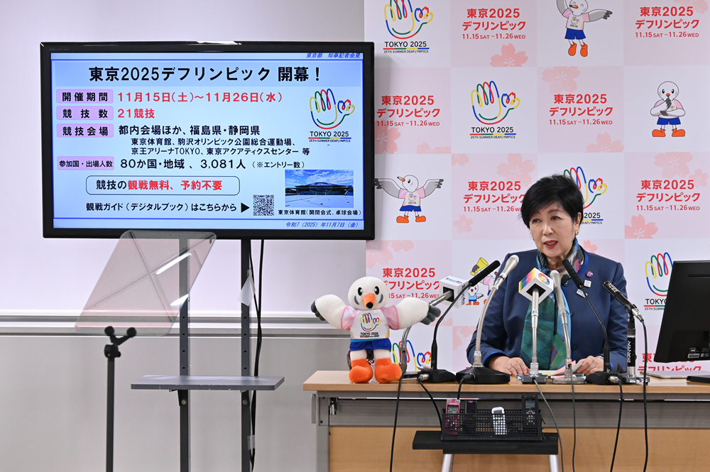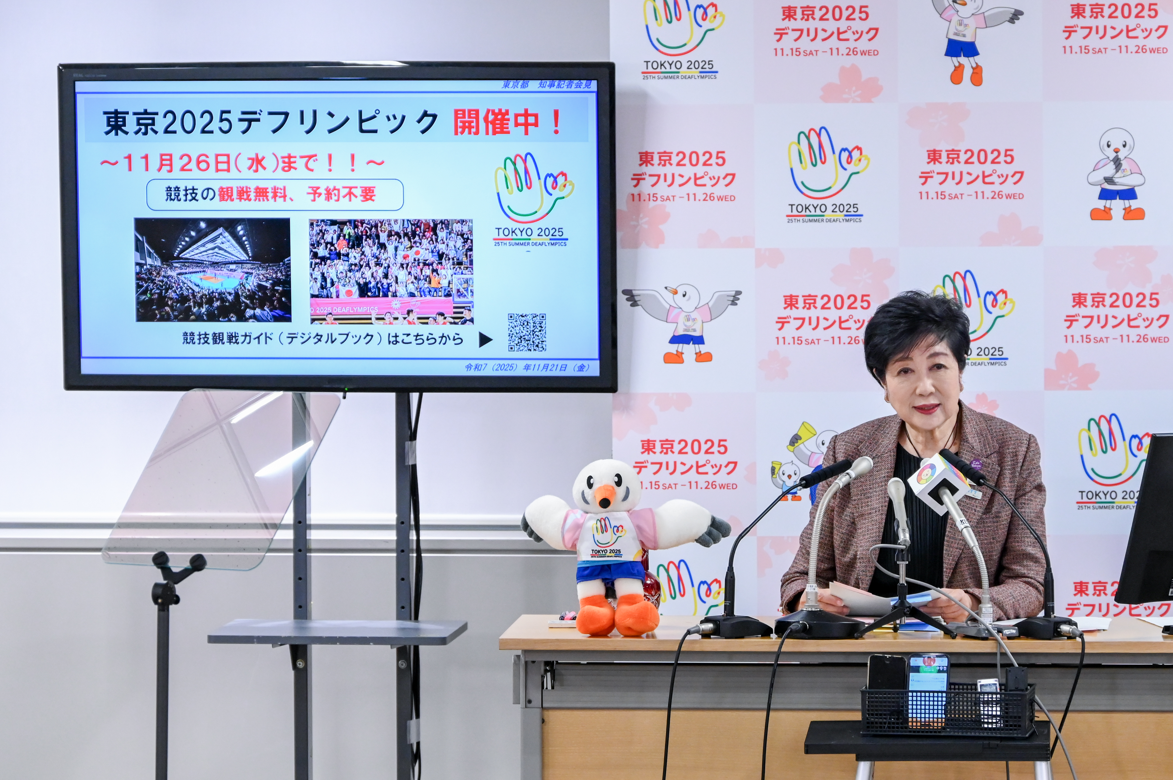 | 2025年11月7日 | 1 台風22号、23号による被害への対応 2 補正予算の編成指示 3 東京2025デフリンピック開幕 4 ねんりんピック東京大会キャッチコピー募集 5 アフォーダブル住宅供給促進ファンド運営事業者候補の選定 6 冬のHTT推進 7 都庁舎プロジェクションマッピング新コンテンツ公開 |