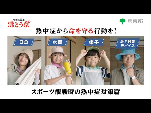 熱中症から命を守る行動を! ~ スポーツ観戦時の熱中症対策篇 ~スポーツ観戦等、屋外でのイベントを楽しむためには、出掛ける前に、暑さへの徹底した備えが大切です。本動画を通して、外出前に東京暑さマップで暑さ指数のチェックすることや、外出時には日傘・帽子・水筒・暑さ対策デバイス等の熱中症対策グッズを活用することを啓発しています。https://www.my.metro.tokyo.lg.jp/w/001-20250822-160091006My TOKYO