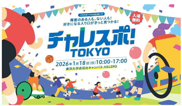 チャレスポ!TOKYO 出演ゲスト等決定障害者がスポーツを始めるきっかけを提供するとともに、障害のある人とない人がスポーツを通じて相互に交流する機会を創出するため、「チャレスポ!TOKYO」を開催します。 この度、イベントに出演いただくゲストやコンテンツの詳細が決定いたしました。パリ2024パラリンピック卓球日本代表の岩渕幸洋(いわぶちこうよう)さんや東京2025デフリンピックにも出場したアスリートなど、多くのゲストがステージ企画や競技体験ブースに登場します。お笑い芸人スギちゃんやプロスポーツチームのマスコットも一緒にイベントを盛り上げます。https://www.metro.tokyo.lg.jp/information/press/2025/12/2025120308都庁総合ホームページ