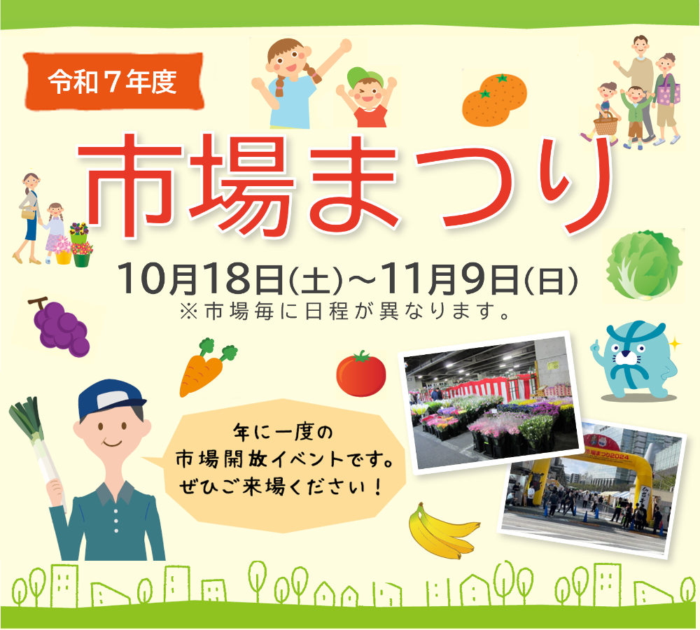 令和7年度市場まつりの開催について東京都中央卸売市場の令和7年度市場まつりの開催について(9月)のページです。https://www.shijou.metro.tokyo.lg.jp/information/press/2025/09/2025091001中央卸売市場
