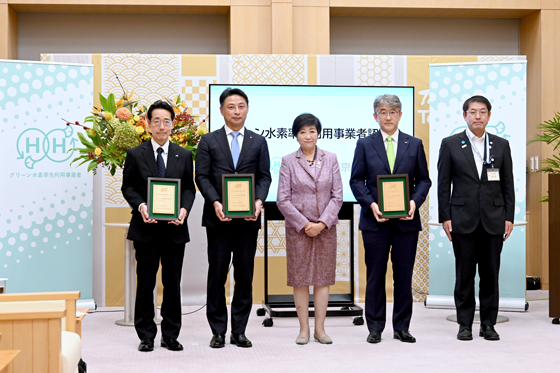 グリーン水素率先利用事業者認証式都庁総合ホームページにおける知事の部屋のグリーン水素率先利用事業者認証式のページです。https://www.metro.tokyo.lg.jp/governor/action/katsudo/2025/10/14_00都庁総合ホームページ