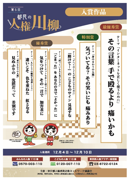 心のバリアフリー普及啓発ポスターコンクール児童・生徒が「心のバリアフリー」について考える機会とし、都民への普及啓発を推進するため、都内の小学4年生から中学生までを対象にポスターを募集しています。 今年度は「つながりの輪が広がるまち 心のバリアフリーがあふれる東京」をテーマに、合計220点の作品が寄せられました。この度、入賞作品が決定し、表彰式を行います。https://www.metro.tokyo.lg.jp/information/press/2025/11/2025112601都庁総合ホームページ