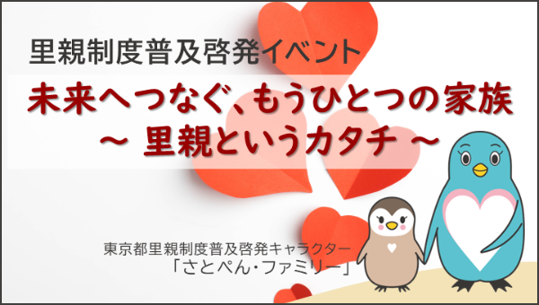 「未来へつなぐ、もうひとつの家族 ~ 里親というカタチ ~」 開催案内東京都福祉局の「未来へつなぐ、もうひとつの家族 ~ 里親というカタチ ~」のご案内のページです。https://www.fukushi.metro.tokyo.lg.jp/kodomo/satooya/sonota/2025event福祉局